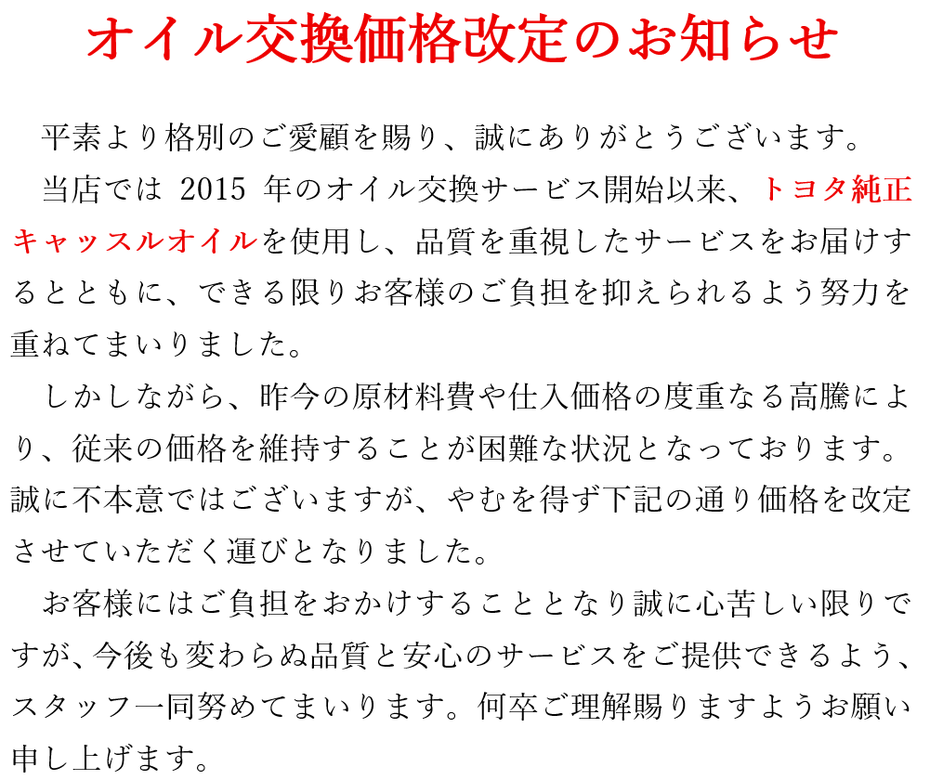 これからも、お客様の愛車の「安全性」と「性能」を確保し、より安全な運転環境の維持をお約束いたします。